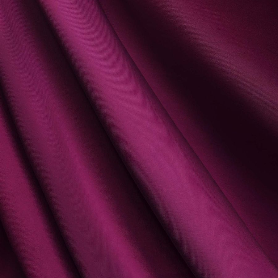 La tela base es una Lycra de Poliéster de 270 gr/m2, con una composición de 82% Poliéster y 18% Elastano y un ancho de 150 cm. El color liso impreso es un Morado Purpura Imperial, cuyo CMYK es 43 100 32 49. Este color, simbólicamente representa la elegancia y el lujo, y técnica y visualmente, es un color intenso y profundo que se asocia con la creatividad y la imaginación. Combina de forma espectacular con amarillos, verdes y dorados, creando un contraste vibrante y cálido. El tejido está impreso con el color liso a una sola cara por impresión digital textil, lo que permite una definición de alta calidad, y no es un tejido tintado, sino impreso por una sola cara.