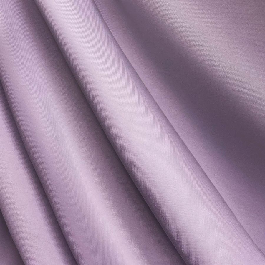 La tela base de esta prenda es una Lycra de poliéster llamada Nairobi, con un gramaje de 270 gr/m2 y un ancho de 150 cm. Su composición es 82% poliéster y 18% elastano, lo que le da su característica textura elástica. El color liso impreso en esta tela es un Morado Lila, reflejado en su contenido de tinta cian de 24, magenta de 42, amarillo de 3 y negro de 0 (CMYK 24 42 3 0). Este color se asocia con la elegancia, la creatividad y la espiritualidad. Combina perfectamente con colores neutros como el gris y el beige, así como con colores más vivos como el naranja, el rosa y el verde esmeralda.