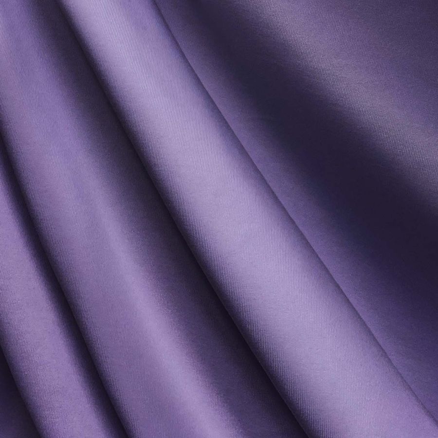 La tela base es una Lycra de Poliéster - Nairobi de 270 gr/m2, con una composición del 82% de poliéster y 18% de elastano. El color liso impreso es un Morado Lirio, representado por un CMYK de 59 63 7 0. Este color combina bien con tonos grises, rosa y verdes claros. La tela está impresa con el color liso a una sola cara por impresión digital textil.