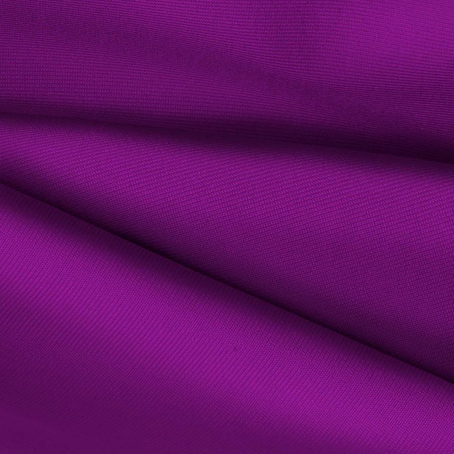 La tela base de este tejido es Lycra de Poliéster Nairobi de 270 gr/m2, de ancho 150 cm y compuesta por 82% poliéster y 18% elastano. Su color liso impreso es de un hermoso morado real con una tinta cyan de 64, una tinta magenta de 100, una tinta yellow de 4 y una tinta black de 1, lo que da como resultado un CMYK de 64 100 4 1. Este color secundario se describe como una mezcla de un púrpura rosado y un púrpura azulado intenso, que combina perfectamente con tonos claros como el blanco y el rosa pálido, así como tonos oscuros como el negro y el gris.