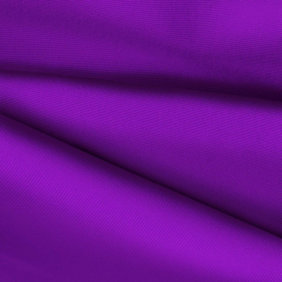 La tela base es una Lycra de Poliéster - Nairobi de 270 gr/m2, de color liso impreso en tonos morado y violeta artístico, con un CMYK de 69 91 0 0. El color secundario se muestra como una combinación de los tonos fríos del azul y del rojo, logrando una expresión artística con matices profundos y sutiles. Este color se combina perfectamente con tonos neutros como el blanco, el gris y el negro, así como con otros tonos fríos como el turquesa y el verde.
