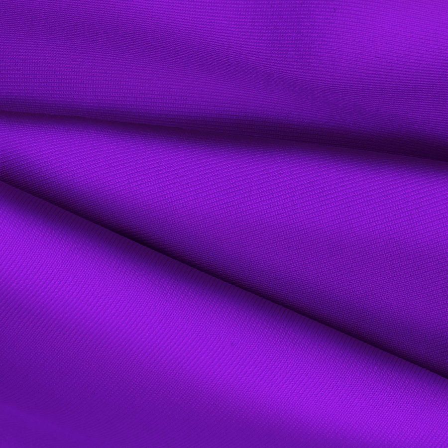 La tela base de esta prenda es Lycra de Poliéster - Nairobi de 270 gr/m2 en color liso impreso en tonalidades de morado y violeta francés, con un CMYK de 73 85 0 0. Este color simboliza la creatividad y la inspiración, al mismo tiempo que representa el misterio y la sofisticación en la moda. Es un color que combina perfectamente con tonalidades más claras como el blanco y el rosa, así como con tonos más oscuros como el negro y el gris. Cabe destacar que esta tela está impresada con el color liso a una sola cara por impresión digital textil utilizando tecnología de sublimación.