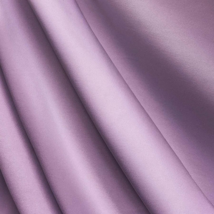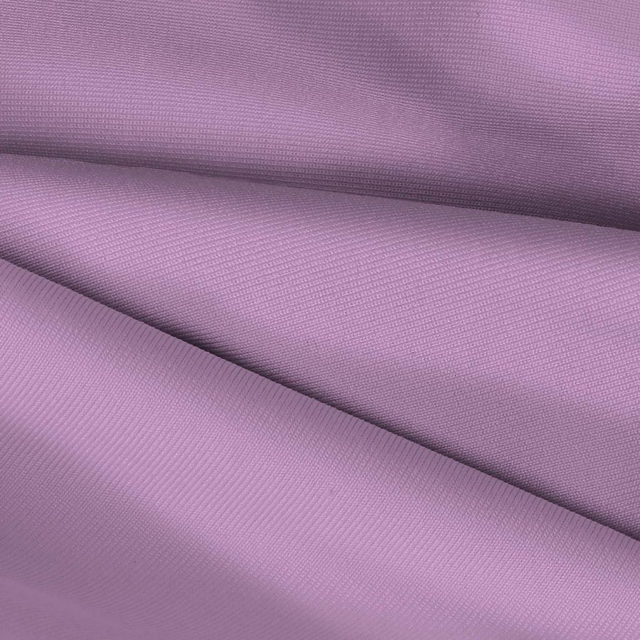 La tela base es la Lycra de Poliéster - Nairobi de 270 gr/m2, de tipo elástico y compuesta en un 82% de poliéster y un 18% de elastano. El color liso impreso es un vibrante morado-violeta pastel, con una tinta cyan del 23 y una tinta magenta del 47 en el espectro CMYK. Este atractivo color combina maravillosamente con tonos como el blanco, negro, rosa, gris y verde claro, permitiendo a los diseñadores crear diseños coloridos y llamativos. La tela está impreso con el color liso a una sola cara por impresión digital textil de alta calidad, permitiendo que los diseños tengan imágenes nítidas y colores vibrantes.