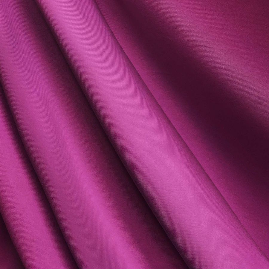 La tela base es la Lycra de Poliéster - Nairobi de 270 gr/m2 y su color liso impreso es Morado, Violeta Rojizo Medio con un CMYK de 28 90 6 0. Este color secundario se caracteriza por generar una sensación de misterio, elegancia y sofisticación, y combina especialmente bien con tonos neutros, como el negro, el blanco o el gris. La tela está impresa con el color liso a una sola cara por impresión digital textil, lo que permite obtener una alta calidad y nitidez de la imagen.