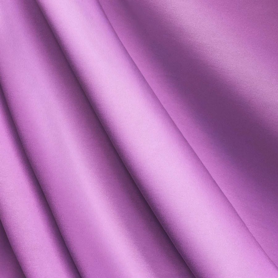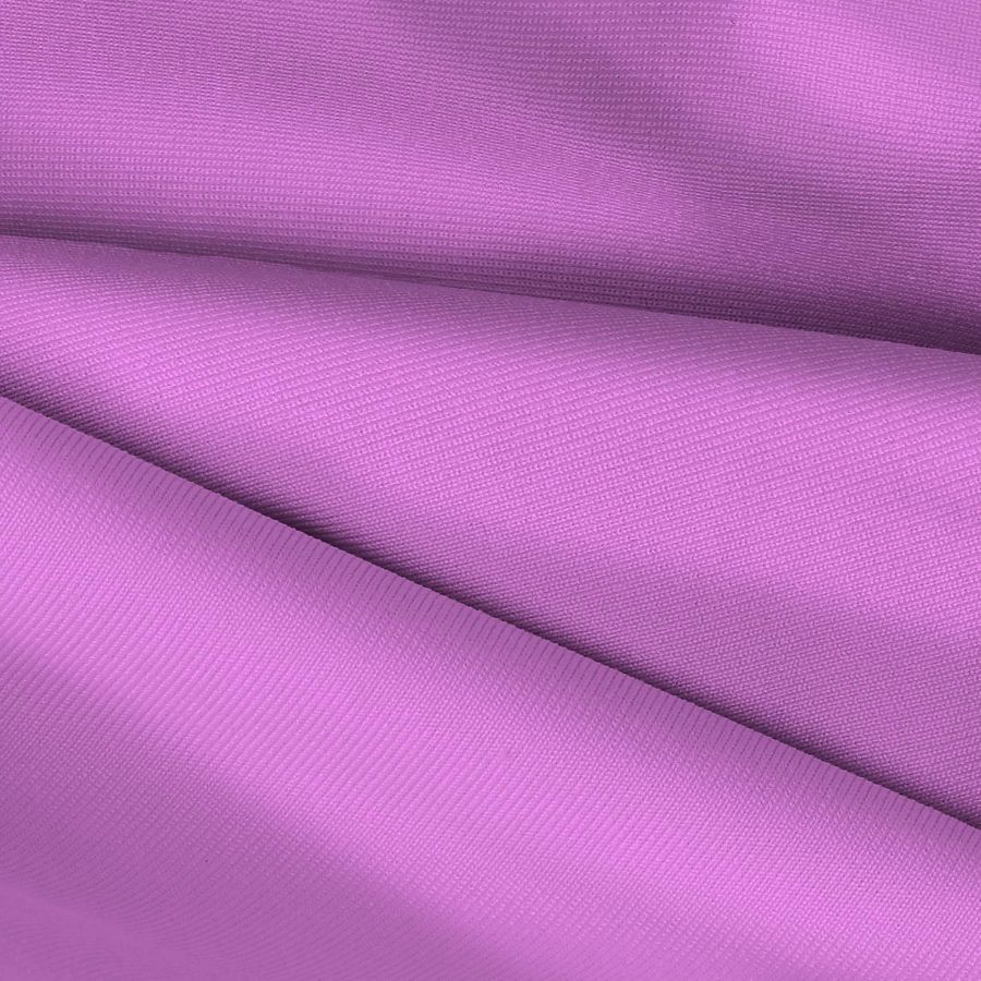 La tela base es Lycra de Poliéster - Nairobi de 270 gr/m2 de color liso Morado/violeta web, con un CMYK de 25 55 0 0. Este color aporta un toque de elegancia y sofisticación a cualquier prenda confeccionada con ella. El violeta es un color que representa la espiritualidad, la creatividad y la sabiduría. Combina perfectamente con tonalidades blancas, grises y negras, logrando una armoniosa combinación de tonalidades. Es importante mencionar que la tela está impresa con el color liso a una sola cara por impresión digital textil.