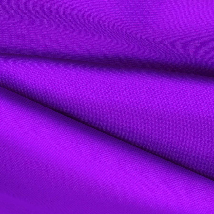 La tela base es una Lycra de Poliéster - Nairobi de 270 gr/m2, un tejido elástico y resistente con una composición del 82% poliéster y 18% elastano. El color liso impreso en esta tela es un Morado Vivid Violeta, obtenido mediante una impresión digital textil con los siguientes datos del CMYK: 72 81 0 0. Este color secundario simboliza la creatividad, la individualidad y la originalidad. El Morado Vivid Violeta combina bien con tonos neutros como el blanco, negro y gris, así como con tonos más atrevidos como el naranja, verde y amarillo.