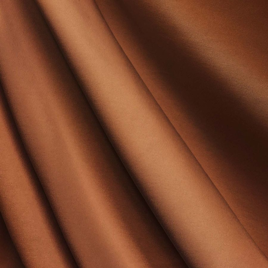 La tela base es una Lycra de Poliéster Nairobi de 270 gr/m2, con un ancho de 150 cm y una composición de 82% poliéster y 18% elastano. El color liso impreso es Naranja-Siena, con un CMYK de 27 70 84 22. Este color evoca una sensación de energía, vitalidad y calidez, perfecto para prendas deportivas, bañadores y lencería. Combina muy bien con tonos neutros como el gris y el blanco.