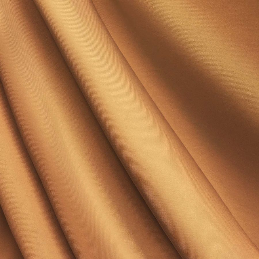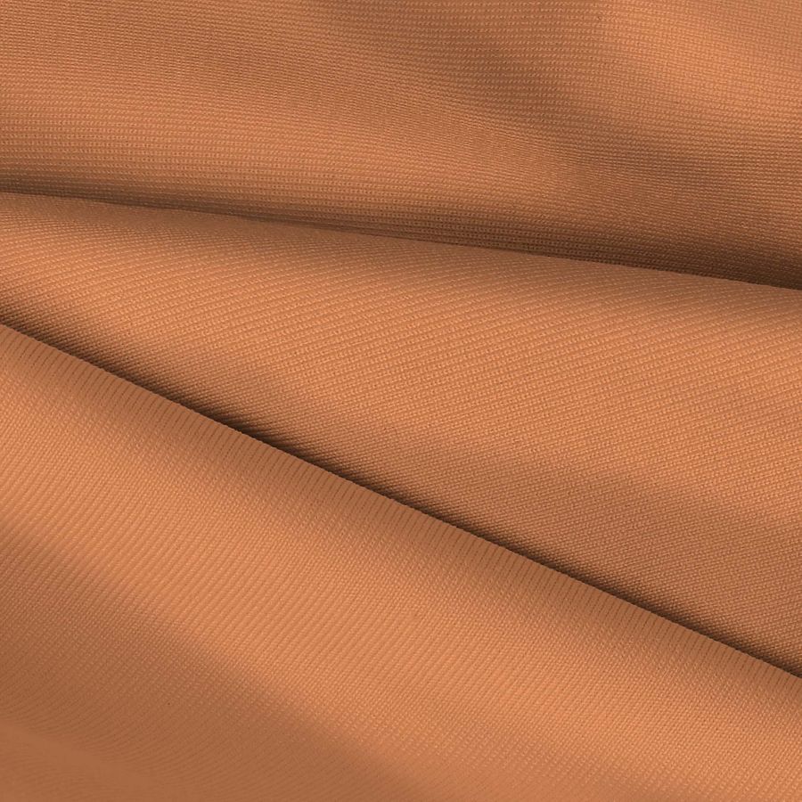 La tela base es Lycra de Poliéster - Nairobi de 270 gr/m2, con un ancho de 150 cm y una composición del 82% de poliéster y 18% de elastano. El color impreso es un naranja teja intenso, con un CMYK de 7 54 70 1. Este color simboliza energía y vitalidad, mientras que técnicamente hablando, el pigmento de color teja es cálido y se encuentra en la mitad superior de la rueda de colores. El naranja teja combina perfectamente con tonalidades cálidas y terrosas como marrones, dorados y verdes oliva.