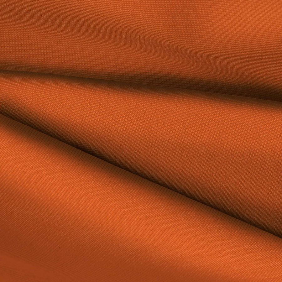 La tela base Lycra de Poliéster - Nairobi de 270 gr/m2 presenta un color naranja sinopia impreso con un CMYK de 17 72 100 6. Este color es una mezcla entre naranja oscuro y marrón rojizo, lo que le confiere una elegancia y sofisticación perfecta para las aplicaciones de moda y deportivas. Combina muy bien con tonos tierra como beige, marrones y verdes oscuros, pero también puede contrastar perfectamente con tonalidades como el verde lima o turquesa.