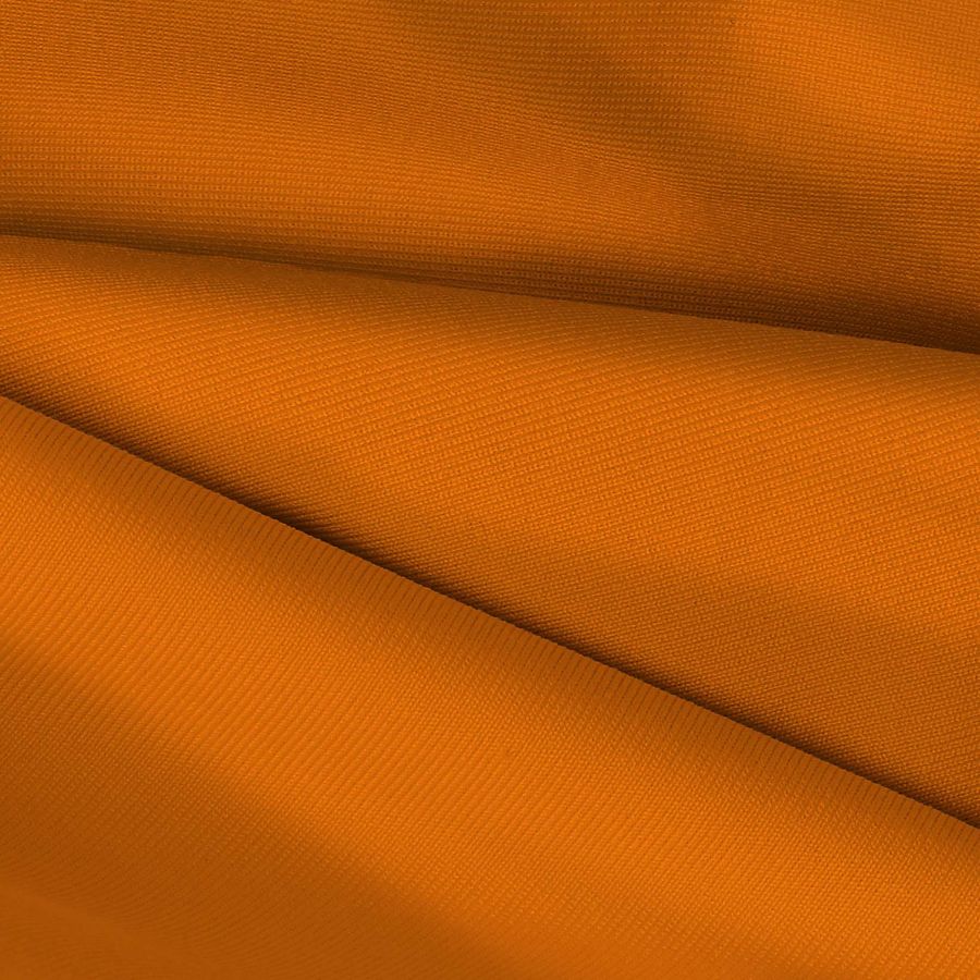 La tela base es una Lycra de Poliéster en Nairobi con una composición de 82% POLIÉSTER y 18% ELASTANO, con un gramaje de 270 gr/m2 y una anchura de 150 cm. El color liso impreso es de un cálido naranja Tangelo, que se compone de una tinta de Cyan 2, Magenta 70, Yellow 100 y Black 0 en un CMYK de 2 70 100 0. Este tono vibrante y atractivo armoniza con tonos neutros y colores secundarios, tales como el blanco, azul pálido, melocotón y verde oliva.