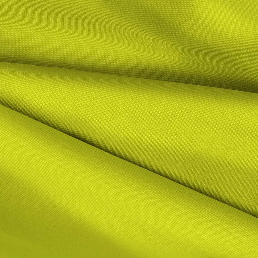 La tela base es Lycra de Poliéster - Nairobi de 270 gr/m2, con una composición de 82% POLIÉSTER, 18% ELASTANO y una anchura de 150 cm. El color liso impreso en esta tela es Amarillo Absenta con un valor CMYK de 22 0 89 0. El color secundario de esta tela es un amarillo verdoso, que simboliza la vitalidad y la energía. Este color combina muy bien con tonos cálidos como marrones y tierras, pero también se puede combinar con colores fríos como azul y verde.
