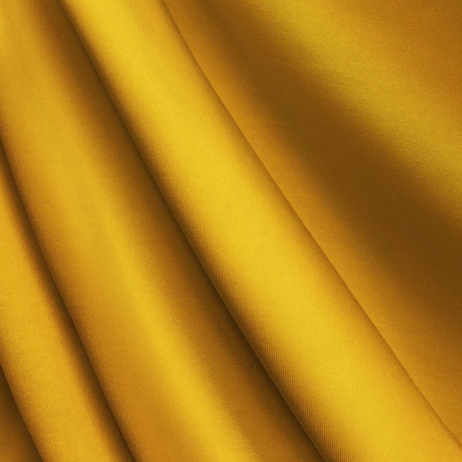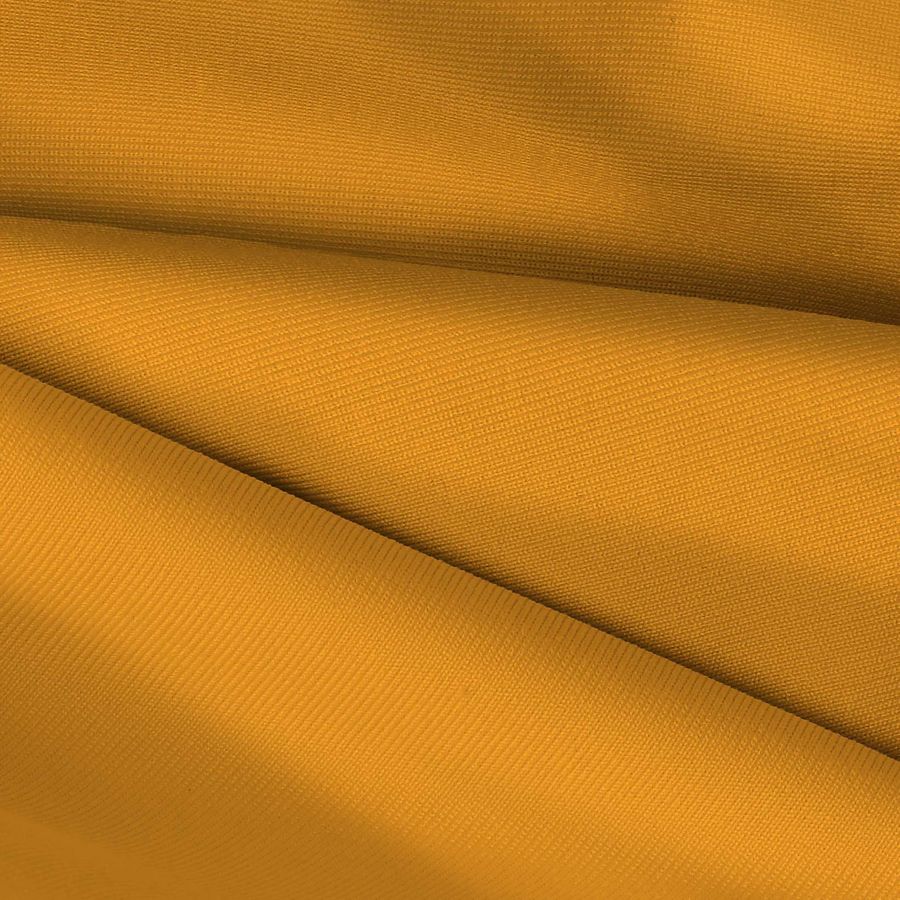 La Lycra de Poliéster - Nairobi es una tela elástica de 270gr/m2 con un ancho de 150cm. El color liso impreso en esta tela es Amarillo Caléndula, que se obtiene mediante una técnica de sublimación con una composición de tinta CMYK de 0 49 93 0. Este amarillo brillante evoca el sol y la alegría del verano, pero también la creatividad y el optimismo. El Caléndula tiene asociaciones adicionales con la sanación y la vitalidad, haciendo que sea un color dinámico y lleno de energía.