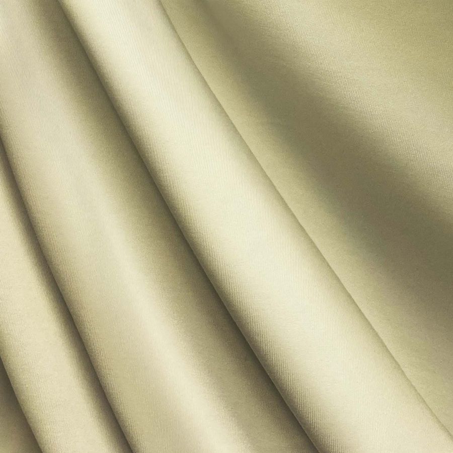 La tela base es la Lycra de Poliéster - Nairobi de 270 gr/m2, de color liso Amarillo Mantequilla, con un CMYK de 2 7 41 0. Este color es un tono suave y delicado que se asemeja al color de la mantequilla fresca. Es una tonalidad ideal para prendas que buscan dar un toque dulce y delicado al conjunto. Combina muy bien con blancos, verdes oliva, beige y colores pastel en general.