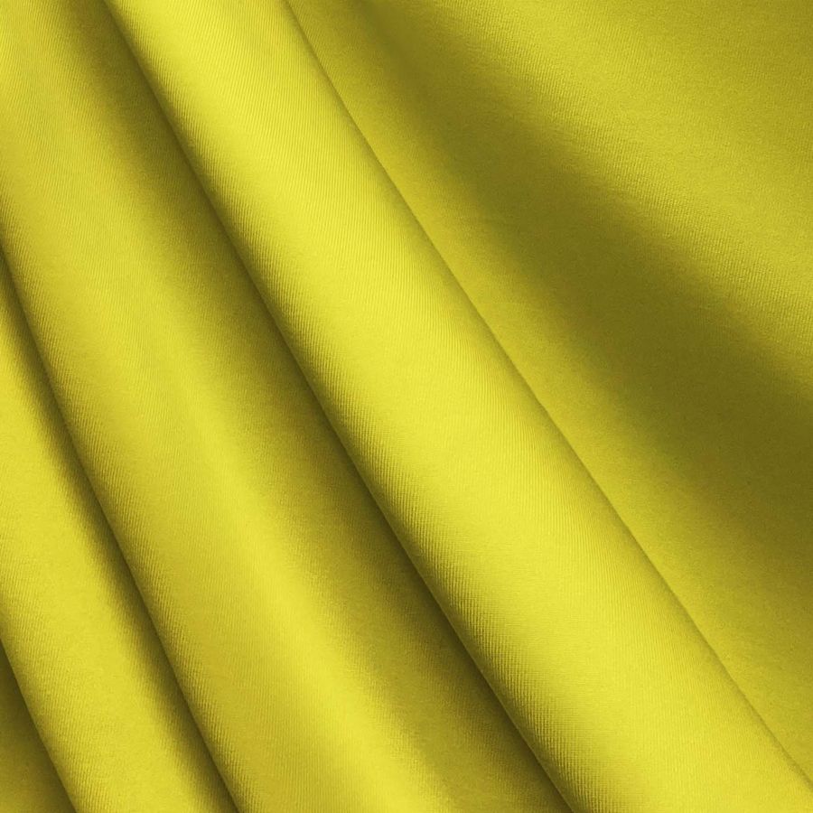 La tela base es Lycra de Poliéster - Nairobi de 270 gr/m2, de textura elástica y acabado resistente al cloro con protección UV muy alta 50+. El color liso impreso es amarillo margarina con un CMYK de 9 9 87 0, siendo su intensidad de color muy alta y energizante. El amarillo es un color que simboliza la felicidad, el optimismo y la creatividad. Combinado con tonos tierra y verdes, crea una paleta cálida y natural. Este color secundario particular combina muy bien con tonos neutros como blanco, gris y negro, así como con otros tonos brillantes como naranja y rosa.
