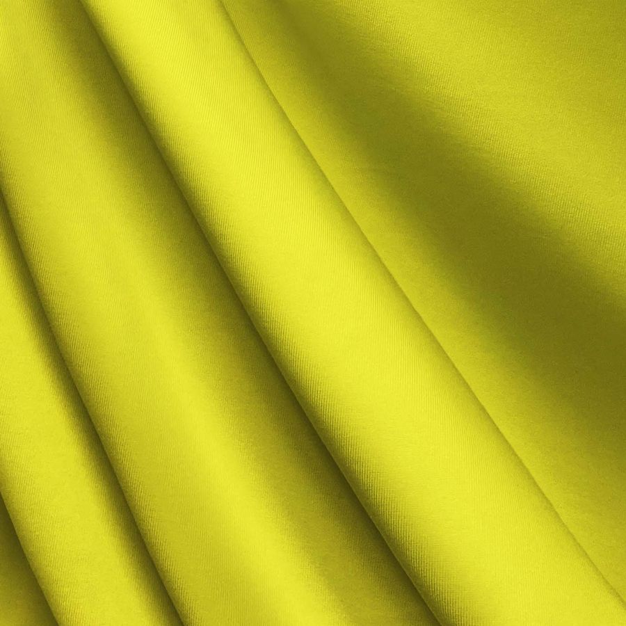 La tela base, Lycra de Poliéster - Nairobi, es una lycra de alta calidad con una composición de 82% Poliéster y 18% Elastano, lo que le da un tacto elástico y suave. El color liso impreso en esta tela es un Amarillo Neón, cuyos atributos de color se reflejan en el CMYK (7,0,85,0). Este color es brillante y vibrante, lo que lo hace perfecto para crear prendas deportivas y de baño llamativas y modernas. Combina muy bien con negro, blanco y tonos grises, lo que permite crear prendas más equilibradas y armoniosas.