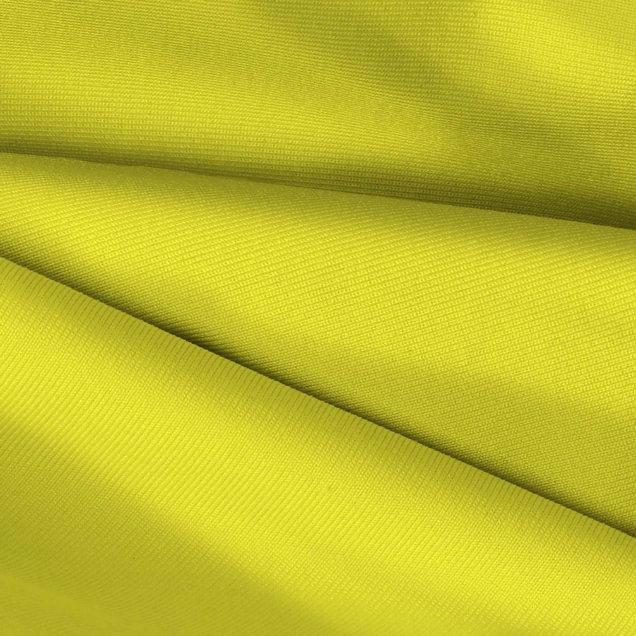 La tela base es una Lycra de Poliéster - Nairobi de 270 gr/m2, compuesta por 82% poliéster y 18% elastano, con un gramaje de 270 gr/m2 y un ancho de 150 cm. El color liso impreso es Amarillo,De Zinc con un CMYK de 10 0 84 0. Este color secundario es un tono cálido con matices metálicos que lo hacen muy interesante y versátil, y puede combinar bien con otros tonos cálidos como el naranja o el dorado, o también con colores más fríos como el azul o el verde. La tela está impresa con el color liso a una sola cara mediante impresión digital textil, lo que significa que los colores se aplican directamente sobre la superficie de la tela y no se sumerge en un tinte.