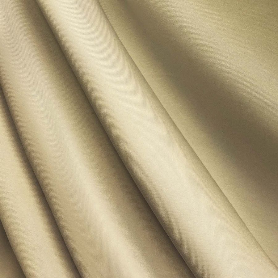 La tela base es una Lycra de Poliéster - Nairobi de 270 gr/m2 con un ancho de 150 cm y una composición de 82% Poliéster y 18% Elastano. El color liso impreso es amarillo chamois con un CMYK de 9 21 47 1. Este color se caracteriza por ser un tono suave, con un matiz amarillo verdoso, que transmite calidez y luminosidad. Complementa perfectamente con tonos verdes, naranjas y blancos, pero también puede combinarse con azules suaves o grises.