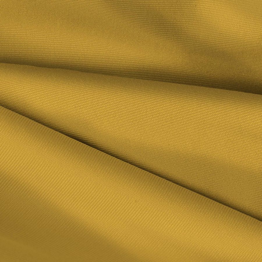 La tela base es una Lycra de Poliéster - Nairobi de 270 gr/m2, con una composición de 82% Poliéster y 18% Elastano, de ancho de 150 cm y con un gramaje de 270 gr/m2. El color liso impreso es un amarillo curry, representado por los valores CMYK (16, 35, 88, 4), que otorga a la tela un aspecto cálido y atrevido. Además, combina muy bien con tonos más claros y oscuros del amarillo, marrones y azules oscuros.