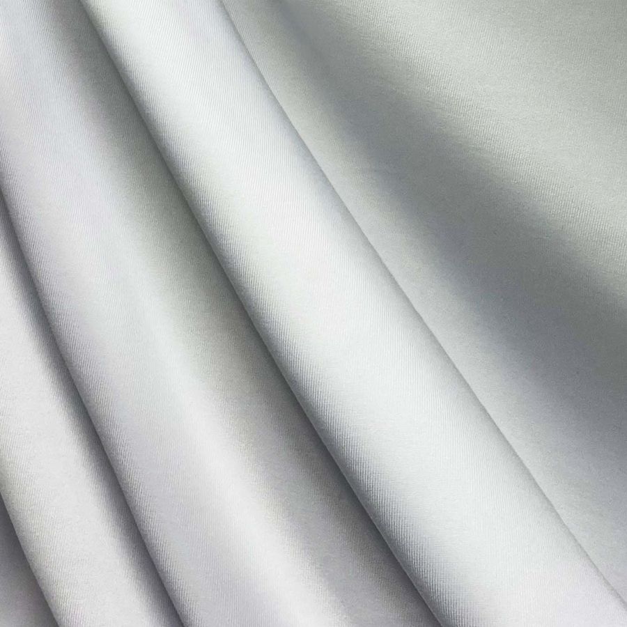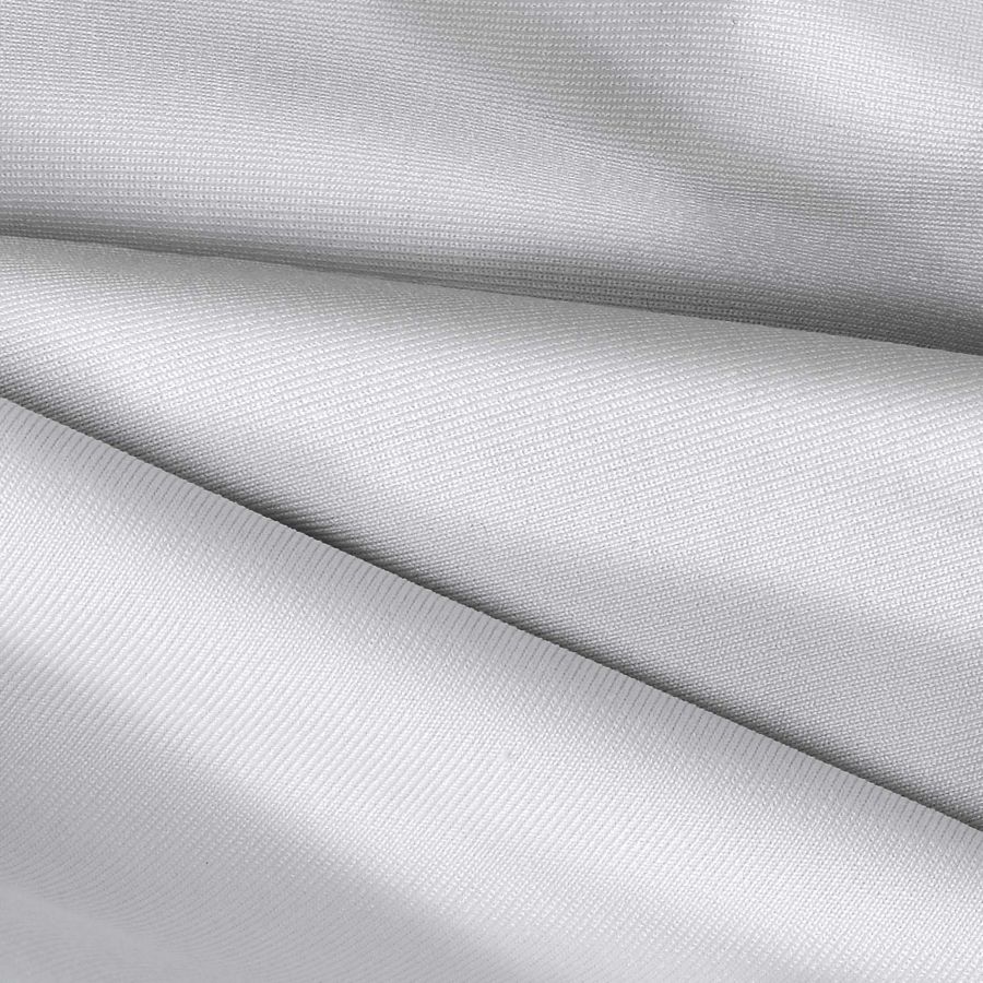 La tela base de este tejido es la Lycra de Poliéster - Nairobi de 270 gr/m2, con una composición de 82% poliéster y 18% elastano. El color liso impreso es Blanco, de Zinc, con un CMYK de 2 1 0 0. Este color secundario combina perfectamente con tonos azules o verdes y puede aportar frescura y elegancia a cualquier prenda.