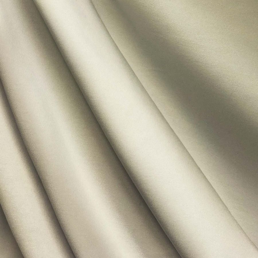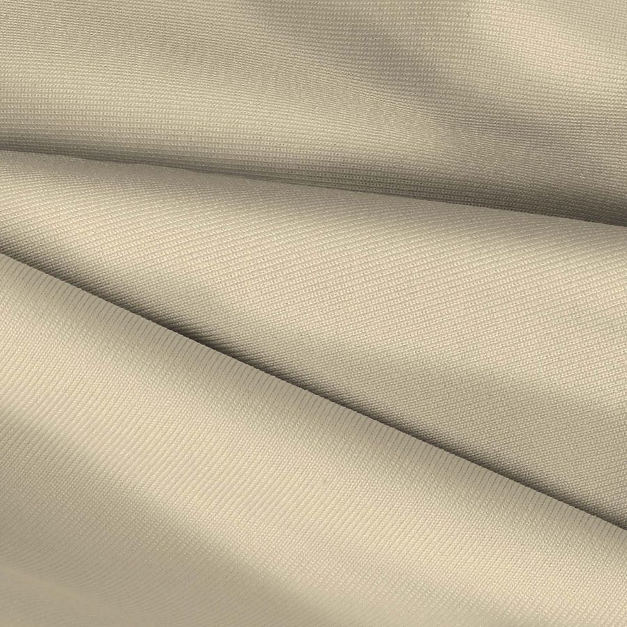 La tela base es Lycra de Poliéster, Nairobi de 270 gr/m2, de composición 82% poliéster y 18% elastano. El color liso impreso es Blanco Holandés, con los siguientes atributos CMYK: 8 12 32 0. Es un color claro y luminoso que combina bien con colores llamativos como el rojo y el verde. El tejido está impreso a una sola cara por impresión digital textil.