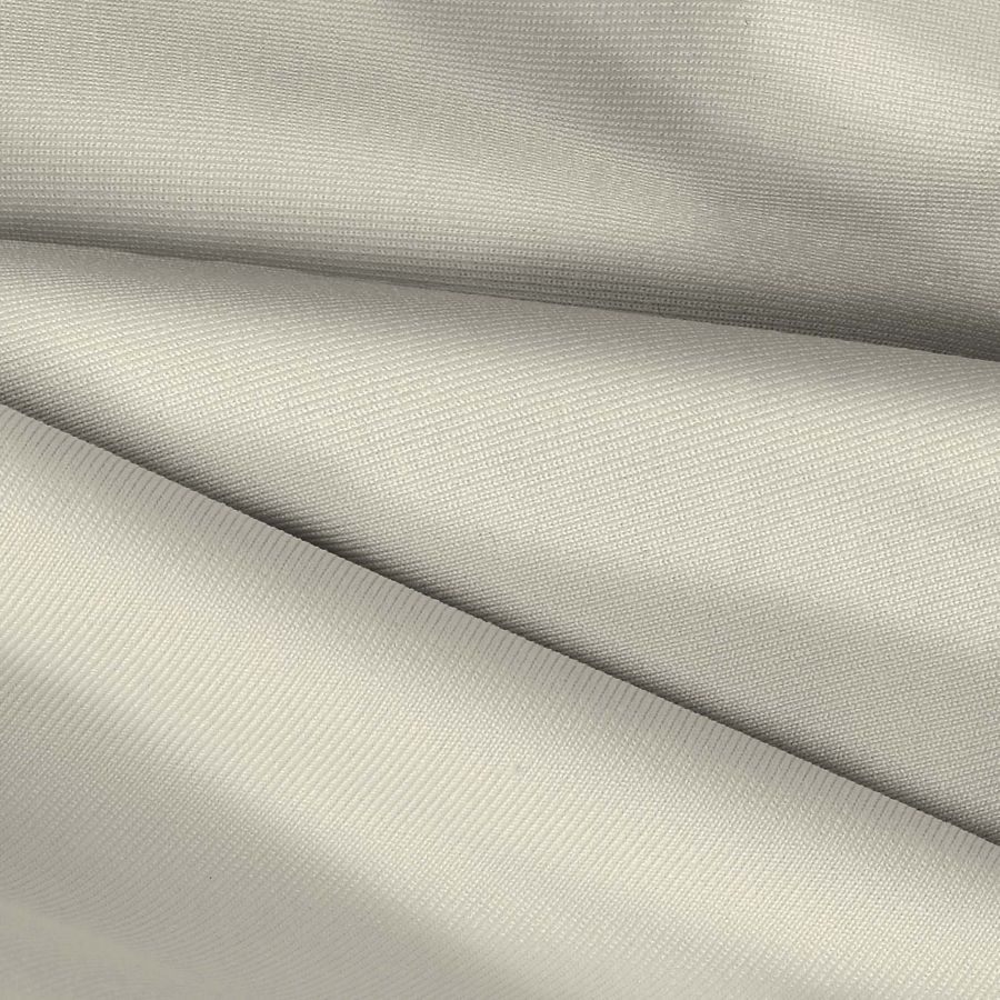La tela base es una lycra de poliéster llamada Nairobi de 270 gr/m2, con composición de 82% poliéster y 18% elastano, con un ancho de 150 cm. El color liso impreso es blanco cáscara de huevo, con un CMYK de 7 7 19 0. Este color tiene un matiz suave, cercano a un blanco roto, con un toque cálido y acogedor. Combinado con gris, beige, rosa pálido o verde menta, se integra en un ambiente elegante y relajado. Es importante destacar que la tela está impresa a una sola cara por impresión digital textil.