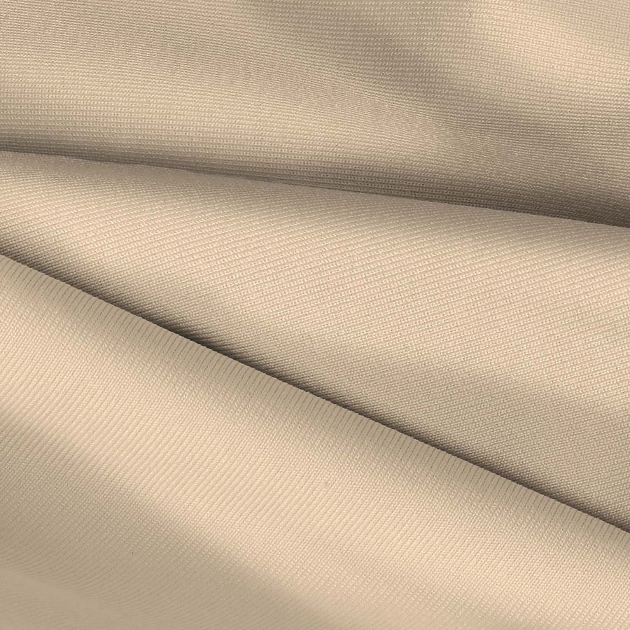 La tela base es una Lycra de Poliéster de 270 gramos por metro cuadrado llamada Nairobi, que se caracteriza por ser suave al tacto, elástica y tener una textura agradable. El color liso impreso que se utiliza en esta tela es un naranja albaricoque claro, que se obtiene a través de la combinación de diferentes tintas en el proceso de sublimación. En concreto, se utiliza una tinta cyan en baja proporción, una magenta en mayor cantidad, una gran cantidad de tinta yellow y ninguna tinta black. El resultado es un color luminoso y alegre que se combina bien con tonos tierra y de formas geométricas.