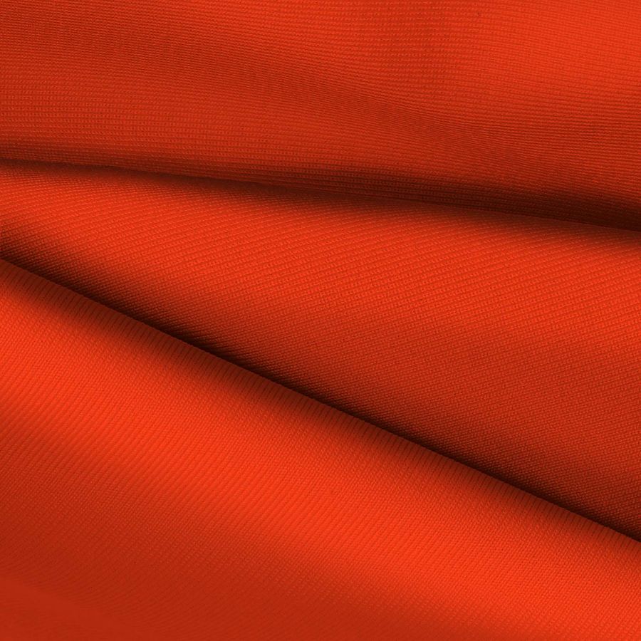 La tela base es Lycra de Poliéster, Nairobi de 270 gr/m2, un tipo de tela elástica compuesta por 82% poliéster y 18% elastano, con un gramaje de 270 gr/m2 y un ancho de 150 cm. El color liso impreso es Rojo Bermellón, cuyo CMYK es 0 91 100 0. Este color simboliza la pasión y la energía, y técnicamente, su tonalidad se encuentra en el espectro entre el rojo y el naranja. Combina perfectamente con tonalidades de amarillo, anaranjado y rosa.