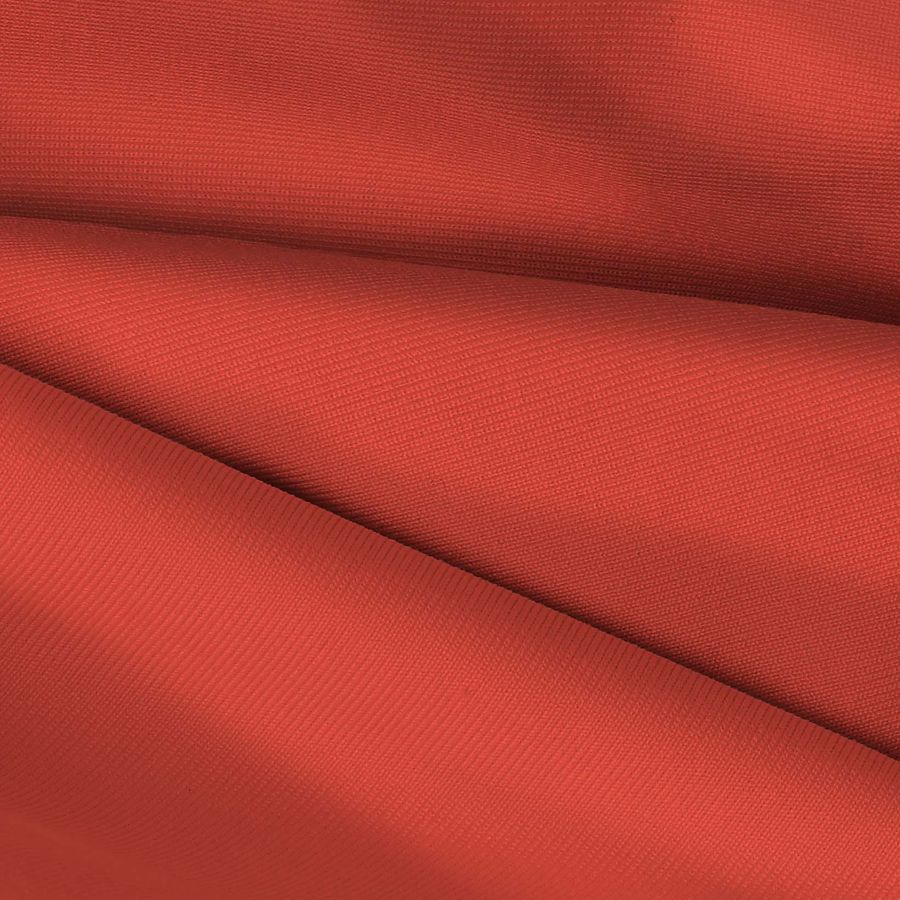 La tela base es Lycra de Poliéster - Nairobi de 270 gr/m2, de color liso impreso en Rojo Cinabrio. El CMYK del color liso es 3 85 80 0, lo que indica una tonalidad roja intensa con grandes proporciones de magenta y amarillo pero sin presencia de negro. Este color simboliza la pasión, el amor y la fuerza, y se combina perfectamente con tonos neutros como el blanco y el negro, así como con tonos complementarios como el verde y el azul.
