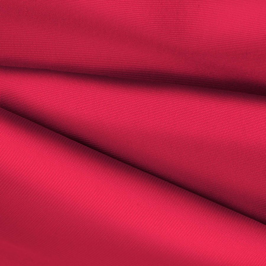 La Lycra de Poliéster - Nairobi es una tela elástica con una composición de 82% poliéster y 18% elastano. El color liso impreso es Rojo Frambuesa, con un CMYK de 0 96 53 0. El color es vibrante y brillante, destacando en cualquier prenda que se utilice. Este color secundario combina perfectamente con tonos verdes, azules y amarillos, ofreciendo un contraste muy atractivo.