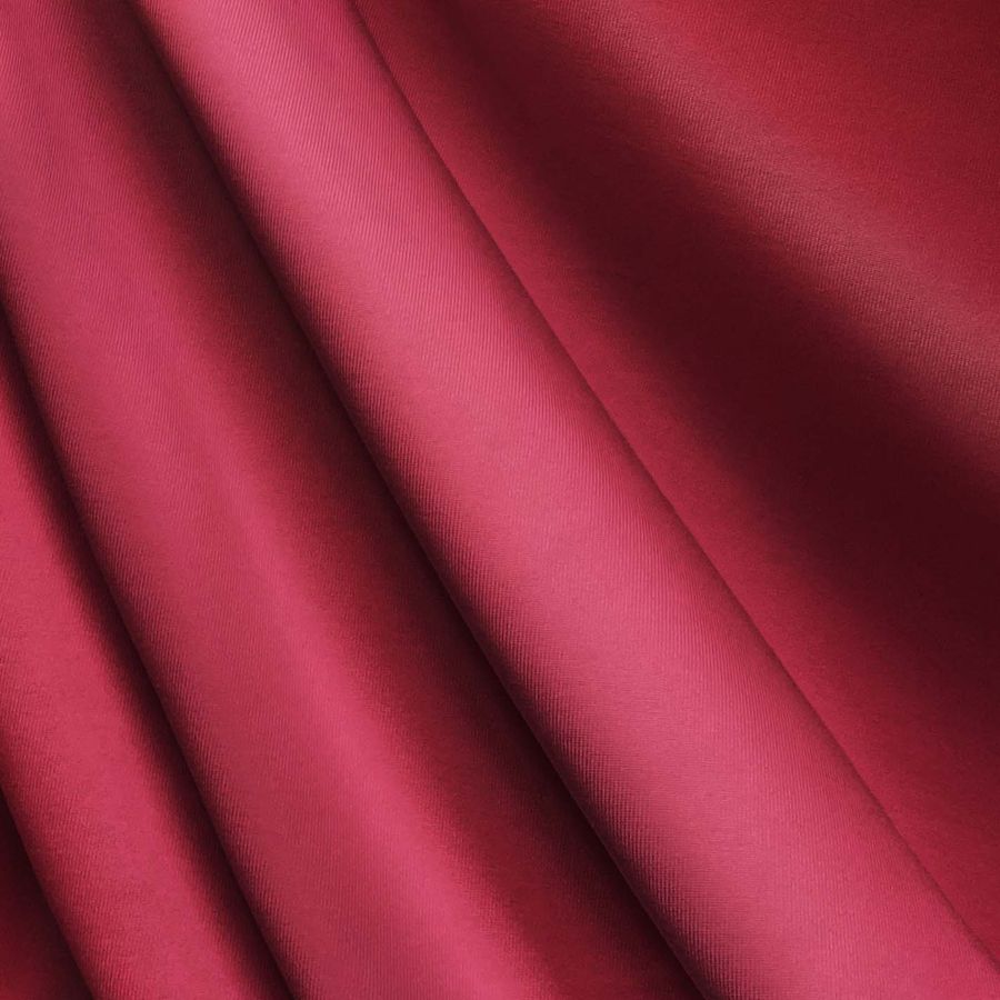 La tela base es una Lycra de Poliéster - Nairobi de 270 gr/m2, con una composición de 82% de poliéster y 18% de elastano, una anchura de 150 cm y aplicaciones en lencería, deporte, baño y moda. El color liso impreso en esta tela es rojo frambuesa francés, representado en el CMYK como 15 93 60 5, lo que refleja su tonalidad intensa y brillante gracias al alto porcentaje de tinta magenta. Además, esta tonalidad es una mezcla de colores cálidos y fríos, que armoniza tanto con tonos tierra como con tonos grises y azules.