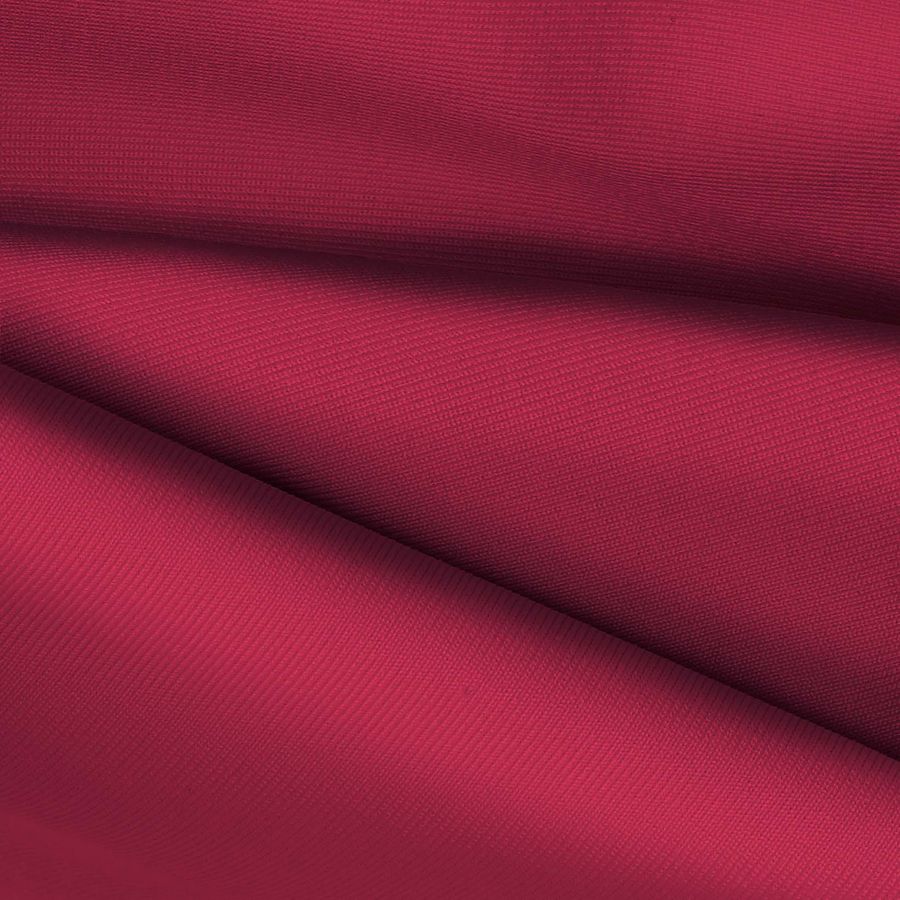 La tela base es una Lycra de Poliéster - Nairobi de 270 gr/m2 de composición 82% poliéster y 18% elastano, con un ancho de 150 cm. El color liso impreso es Rojo Granate, representado por las tintas Cyan 23, Magenta 98, Amarillo 52 y Negro 17 en el CMYK. Es una tela limpiamente impresa que combina bien con negro, blanco, gris, azules y verdes.
