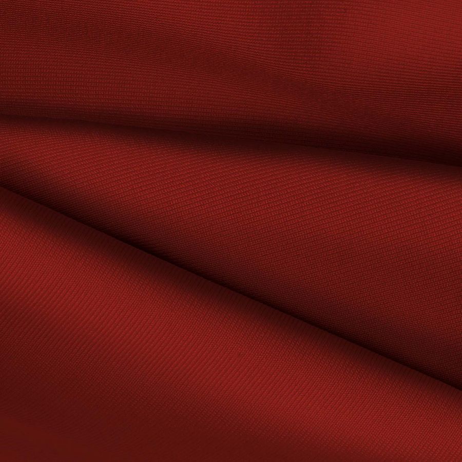La tela base es Lycra de Poliéster - Nairobi de 270 gr/m2, con composición de 82% POLIÉSTER y 18% ELASTANO, de 150 cm de ancho y apta para diversas aplicaciones como lencería, ropa deportiva, trajes de baño y prendas de moda. El color liso impreso es de tonalidad granero rojo, con un contenido de CMYK (Cyan, Magenta, Yellow y Black) de 30, 100, 100 y 42 respectivamente. Este color transmite fuerza e intensidad, y armoniza perfectamente con tonos negros, grises o blancos, contrastando así su atrevimiento y dando un toque chic y elegante.