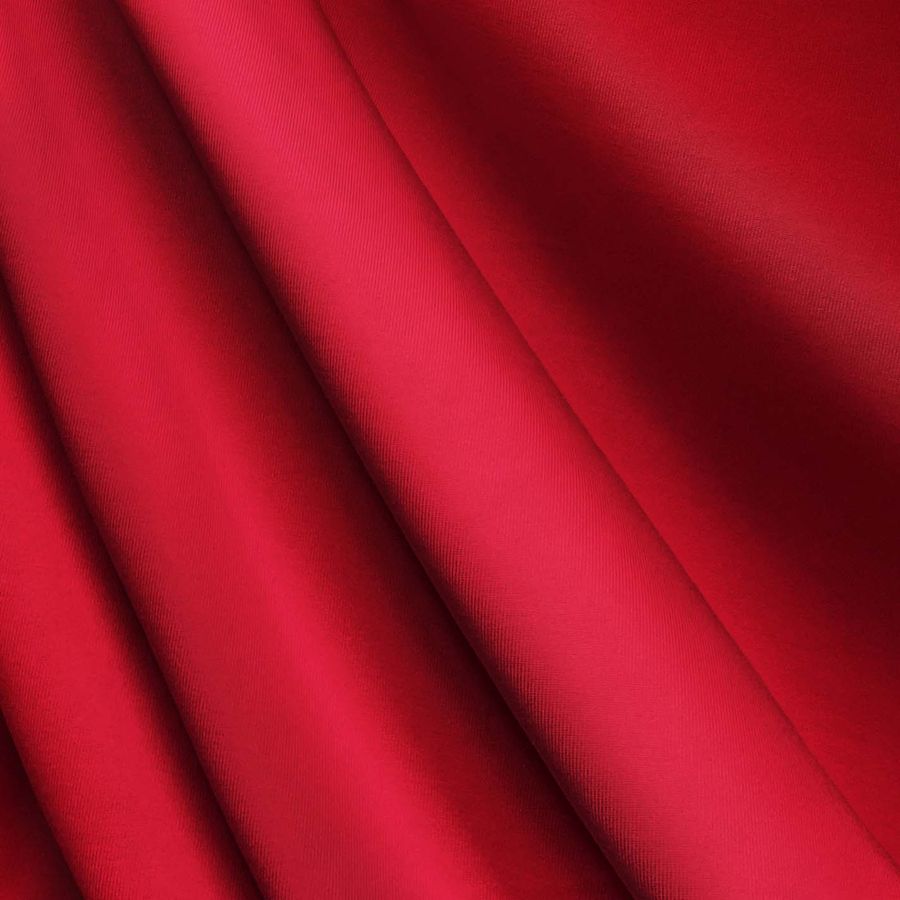 La tela base es una Lycra de Poliéster - Nairobi de 270 gr/m2 de 150 cm de ancho compuesta por un 82% de POLIÉSTER y un 18% de ELASTANO. El color liso impreso es un vibrante Rojo de Cadmio con un CMYK de 1 100 89 0. Este color secundario es intenso y fuerte, transmitiendo pasión y vitalidad. Combina particularmente bien con tonos neutros como el gris y el blanco, así como con tonos oscuros como el negro o el marrón para crear un contraste llamativo.
