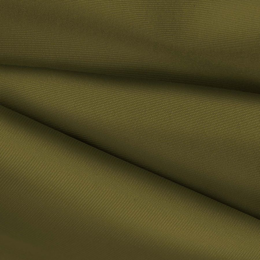 La tela base es una Lycra de Poliéster, Nairobi, con un gramaje de 270 gr/m2 y una composición de 82% poliéster y 18% elastano. El color liso impreso en esta tela es de un tono Verde Bronce Antiguo, que se obtiene a partir de una combinación de tintas en CMYK con valores de 52 en Cyan, 45 en Magenta, 98 en Yellow y 40 en Black. Este color secundario tiene una rica profundidad y elegancia que le otorga una apariencia sobria y sofisticada. El Verde Bronce Antiguo se combina muy bien con gris, crema, beige, marrón oscuro y negro.