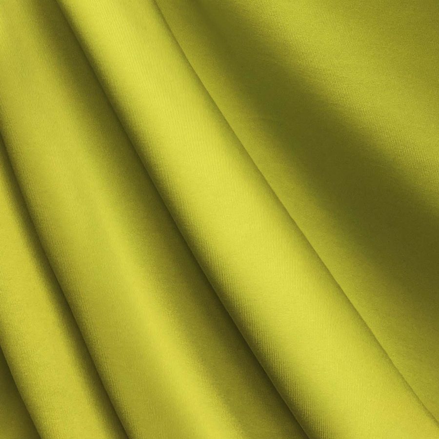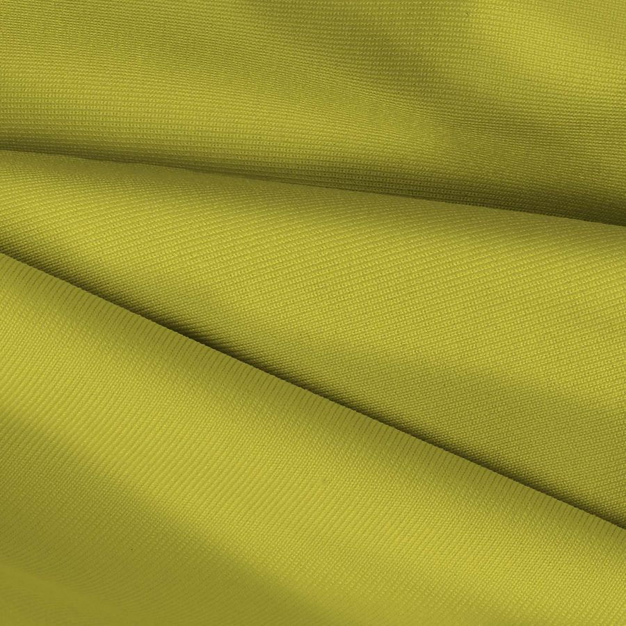 La tela base es una Lycra de Poliéster de 270 gr/m2, con una composición del 82% de poliéster y un 18% de elastano. El color impreso es un tono verde cartuja, cuyo CMYK es 28 16 89 2, lo que significa que tiene un tono verdoso profundo, matizado con un toque magenta suave y con alto contraste en amarillo y tono negro. Este color combina bien con otros tonos de verdes, amarillos suaves y algunos rojos fríos.