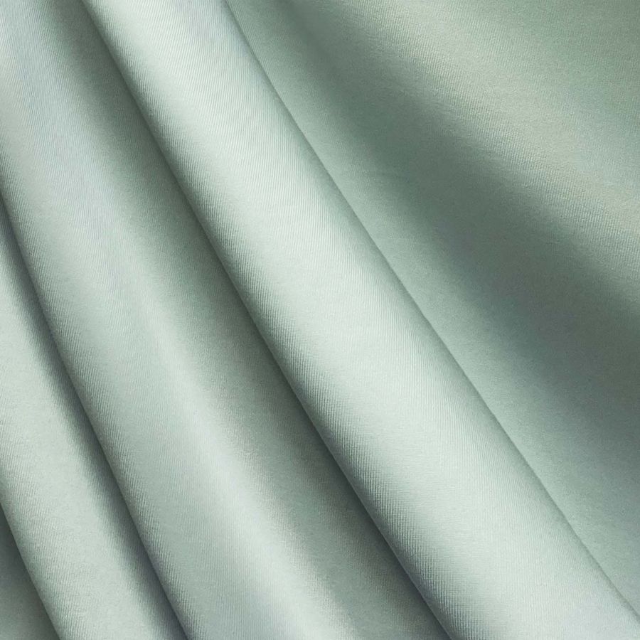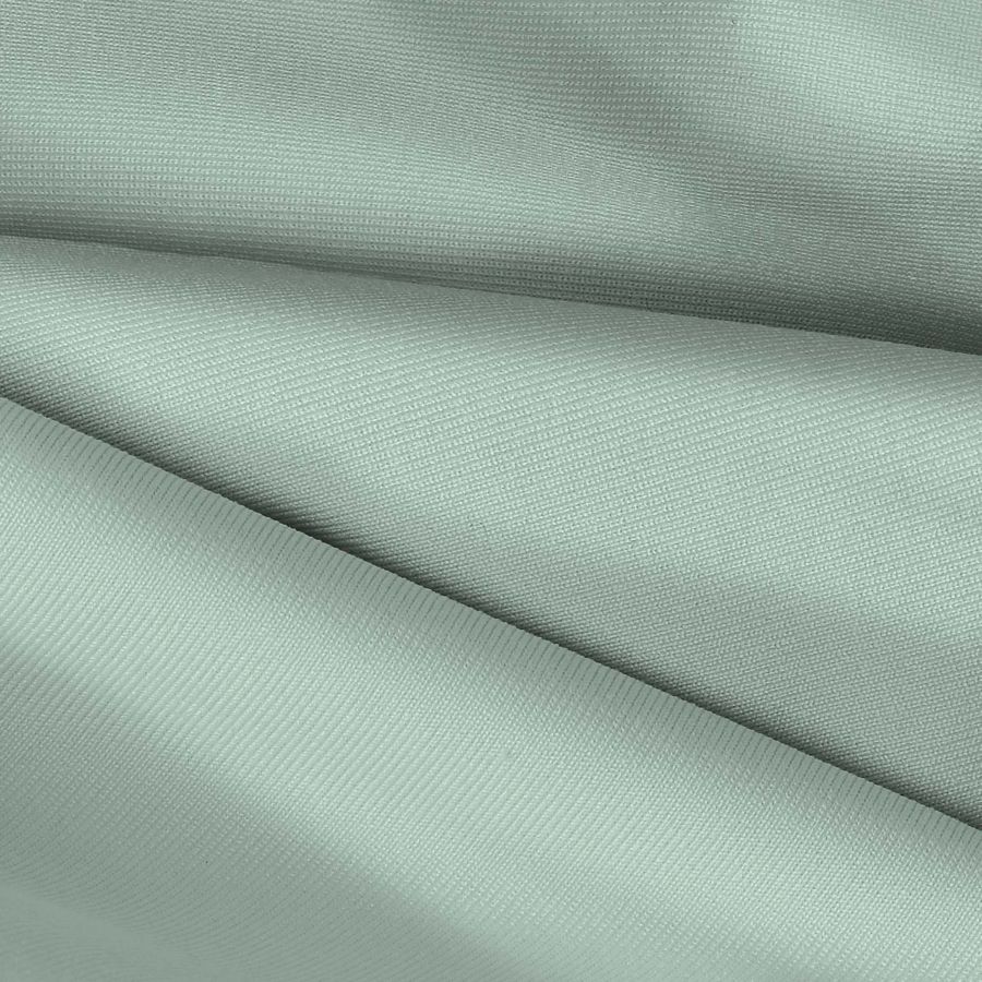 La tela base es una lycra de poliéster de 270 gr/m2, con un ancho de 150 cm y una composición del 82% de poliéster y 18% de elastano. El color liso impreso es de un verde espuma de mar, con un CMYK de 31 4 25 0. Este color secundario es una mezcla de tonos verdes y azules que evoca la serenidad del mar. Además, el color verde espuma de mar combina especialmente bien con tonos neutros, como el blanco y el beige.