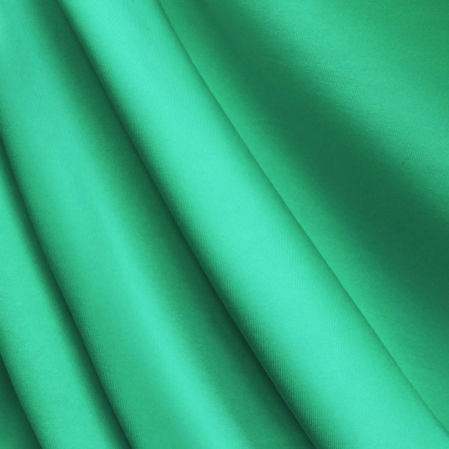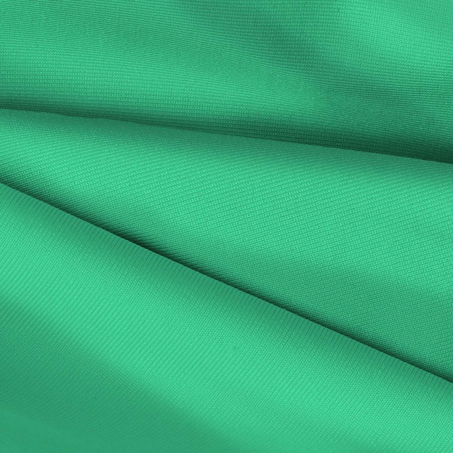 La tela base es Lycra de Poliéster - Nairobi de 270 gr/m2, siendo una tela elástica con una composición de 82% POLIÉSTER y 18% ELASTANO. El color liso impreso en este tejido es un verde acuático con un CMYK de 63 0 57 0. Este color evoca la frescura y pureza de las aguas cristalinas, y simboliza la calma y tranquilidad. Combina perfectamente con colores neutrales como el blanco y el negro, así como con tonalidades de marrón y beige para dar toques terrosos.