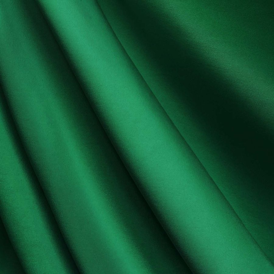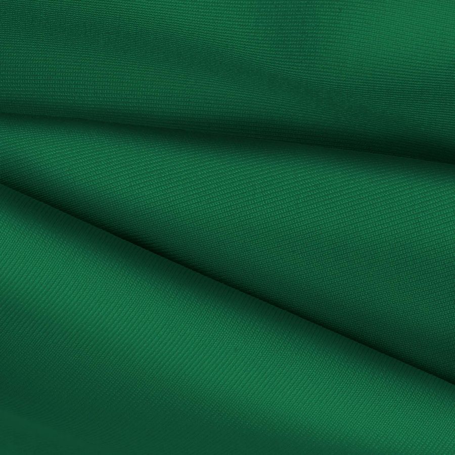 La tela base es una Lycra de Poliéster de 270 gr/m2, compuesta por 82% de poliéster y 18% de elastano. El color liso impreso es Verde Cadmio, identificado por un CMYK de 89 31 90 23, que muestra un tono medio verdoso con un toque cálido. Este color combina perfectamente con tonalidades naranjas, amarillas y marrones.