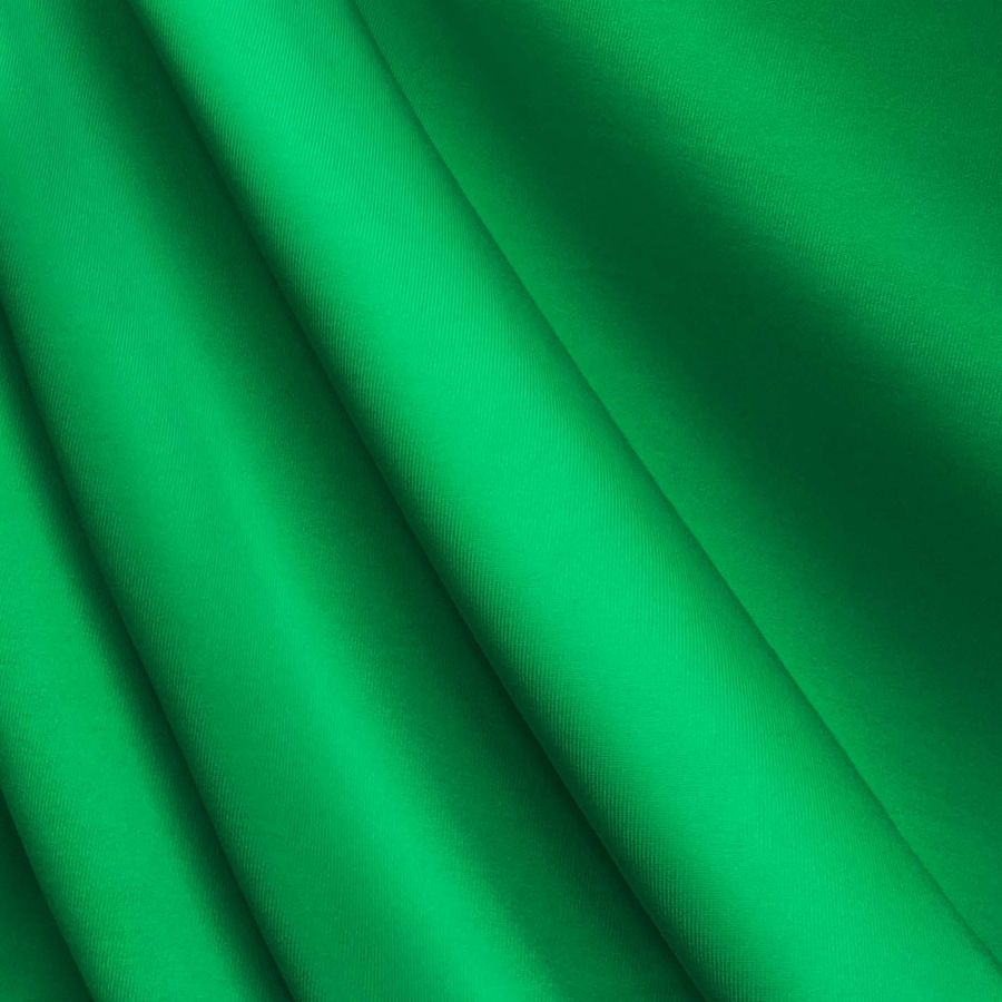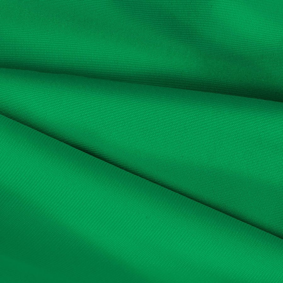La tela base es una Lycra de Poliéster llamada Nairobi de 270 gr/m2, de 150 cm de ancho. Su composición es 82% Poliéster y 18% Elastano, lo que le confiere un tacto y una elasticidad excepcionales. El color liso impreso es de un verde intenso y vibrante, con un contenido de tintas CYMK de 80-2-87-0, lo que le da un acabado pigmentado y duradero. Este color secundario combina de forma espectacular con otros tonos de verdes y de amarillos, evocando una imagen natural y fresca.