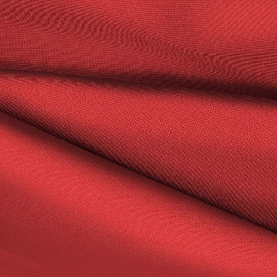 La tela base es Lycra de Poliéster - Nairobi de 270 gr/m2, con una composición de 82% poliéster y 18% elastano. El color liso impreso es Rojo Ultrarrojo, compuesto por 14 de tinta cian, 91 de tinta magenta, 79 de tinta amarilla y 4 de tinta negra en CMYK. El color secundario, rojo ultrarrojo, simboliza la pasión y fuerza. Técnicamente, el rojo ultrarrojo es un tono rojo oscuro y profundo que combina bien con tonos tierra y tonalidades brillantes. La tela base está impresa con el color liso a una sola cara mediante impresión digital textil. La tela tiene una textura elástica y es resistente al cloro, además cuenta con un factor de protección UV muy alto 50+.