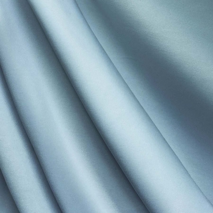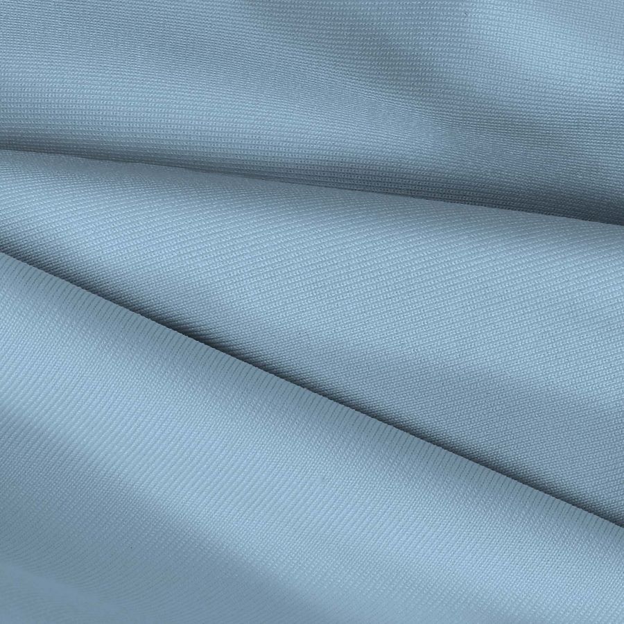 La tela base es Lycra de Poliéster - Nairobi de 270 gr/m2 en color liso impreso en Azul, Angel Azul con CMYK 43 13 7 0. El color impreso es vibrante y fresco con matices de azul flotando entre el cielo y el agua. Combina a la perfección con tonos neutros y tierra, creando un efecto relajante y envolvente en el espectador.