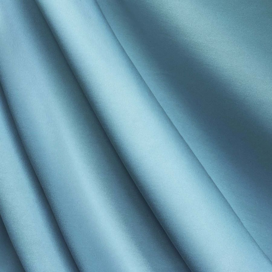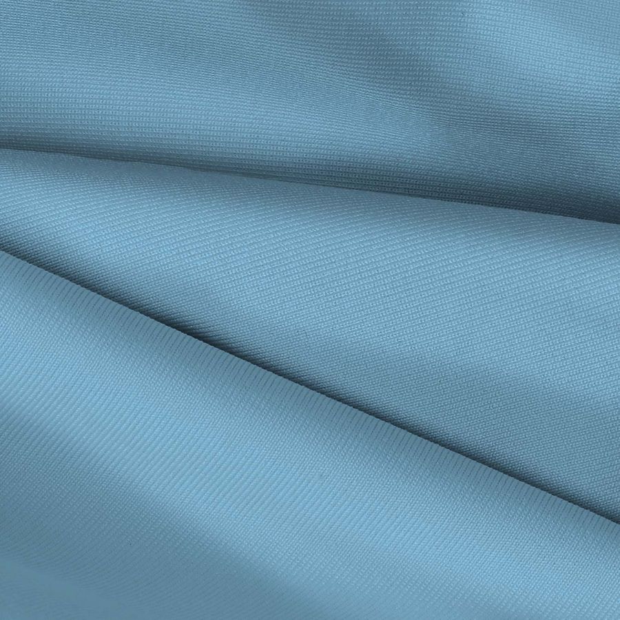La tela base es la Lycra de Poliéster - Nairobi de 270 gr/m2, de composición 82% poliéster y 18% elastano, con un ancho de 150 cm y una textura elástica y suave al tacto. El color liso impreso es un azul Curaçao con un CMYK de 54 15 10 0, que combina perfectamente con colores cálidos como el naranja, rosa y amarillo, así como con tonos más fríos como el azul marino y el turquesa.