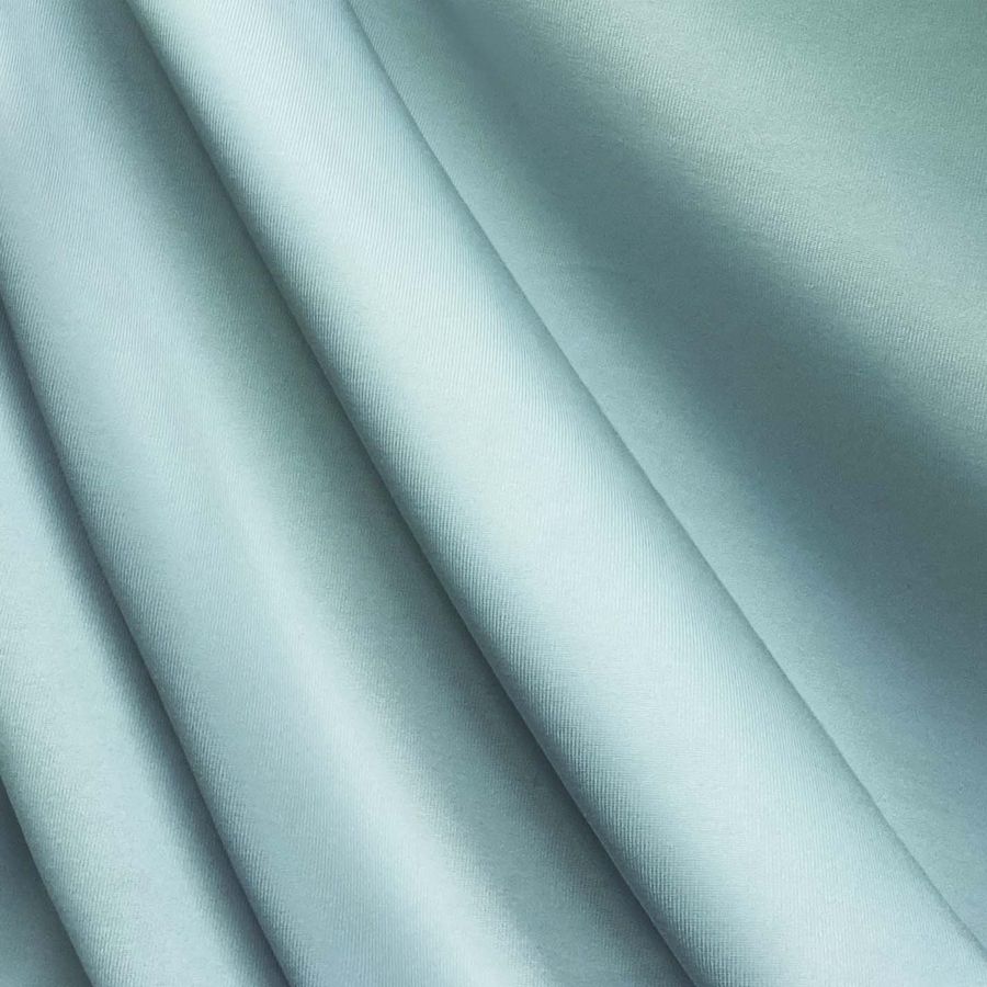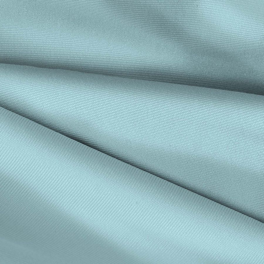 La tela base es una Lycra de Poliéster - Nairobi de 270 gr/m2 en un color liso impreso de tonalidad azul. La composición de esta tela está formada por un 82% de poliéster y un 18% de elastano. El CMYK del color impreso es de 34 0 12 0, lo que le otorga una tonalidad azulada con un matiz infantil. Este color combinado con tonos cálidos como el amarillo o el naranja, puede crear una armonía visual atractiva para una prenda con estilo juvenil.