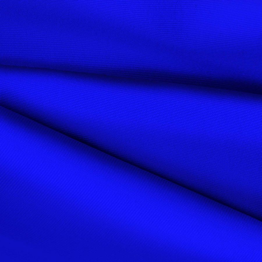 La tela base es una Lycra de Poliéster llamada Nairobi, con un gramaje de 270 gr/m2 y una composición de 82% poliéster y 18% elastano. En cuanto al color liso impreso, se trata de un azul mate con tinta cyan al 93% y tinta magenta al 75%. El color liso impreso combina especialmente bien con tonos azules oscuros y verdes profundos.