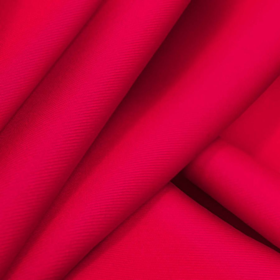 La tela base es la Lycra Reciclada - Recycled de 190 gr/m2, compuesta por 85% poliéster y 15% elastano, de textura suave y elástica. El color liso impreso es Rojo Carmín, con CMYK de 0 95 67 0. Este color secundario intenso y atractivo, combina perfectamente con tonos neutros como el blanco, el negro y el gris, así como con colores análogos como el naranja y el morado. El tejido está impreso con este color a una sola cara por impresión digital textil, lo que permite lograr una alta calidad sin sacrificar la elasticidad y suavidad de la tela.