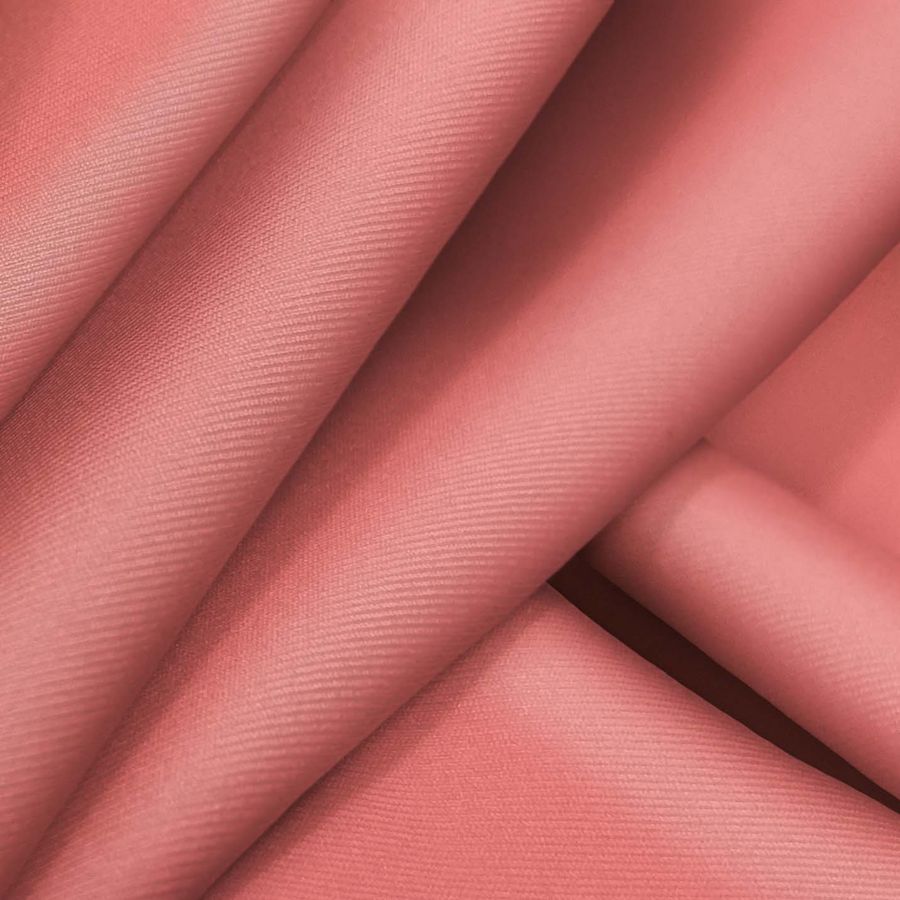 La Lycra Reciclada - Recycled es una tela elástica compuesta por 85% poliéster y 15% elastano, con un gramaje de 190 gr/m2 y un ancho de 150 cm. Su color liso impreso es un rojo pastel de ciruela con un CMYK de 0 66 45 0, que combina especialmente bien con tonos rosados y grises. La tela está impresa con el color liso a una sola cara por impresión digital textil. Sus características incluyen un tacto suave y elástico, además de ser resistente al cloro y contar con protección UV muy alta 50+. Entre las aplicaciones y usos destacan los coleteros, scrunchies, bikinis y bañadores. Los cuidados recomendados incluyen no blanquear, lavar a temperatura máxima de 40ºC, planchar a temperatura fría y no secar con secadora. La tecnología de impresión utilizada es la sublimación (poliéster).