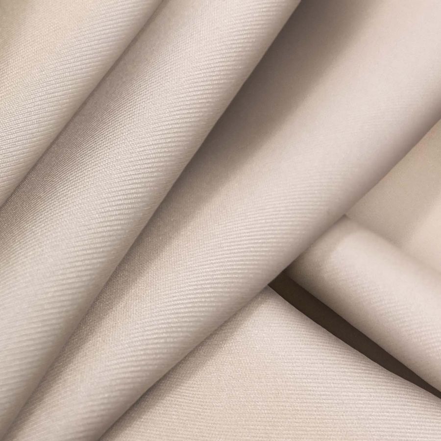 La tela base es Lycra Reciclada - Recycled de 190 gr/m2, de composición 85% poliéster y 15% elastano, con un gramaje y un ancho de 190 gr/m2 y 150 cm, respectivamente. El color liso impreso es una combinación de rosa y carne, reflejando el contenido del CMYK de 0 18 21 0. Este color secundario evoca una sensación de calidez y frescura, y combina especialmente bien con tonos neutros como el gris o el beige.
