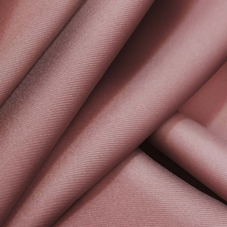 La tela base es Lycra Reciclada - Recycled de 190 gr/m2, compuesta por 85% poliéster y 15% elastano. El color liso impreso es rosa cobre, representado por el CMYK 31 58 44 25. Este color es una mezcla armónica de rosa y naranja, que transmite energía y vitalidad. Combina perfectamente con tonos neutros y marrones oscuros, así como con azules profundos y verdes oliva.