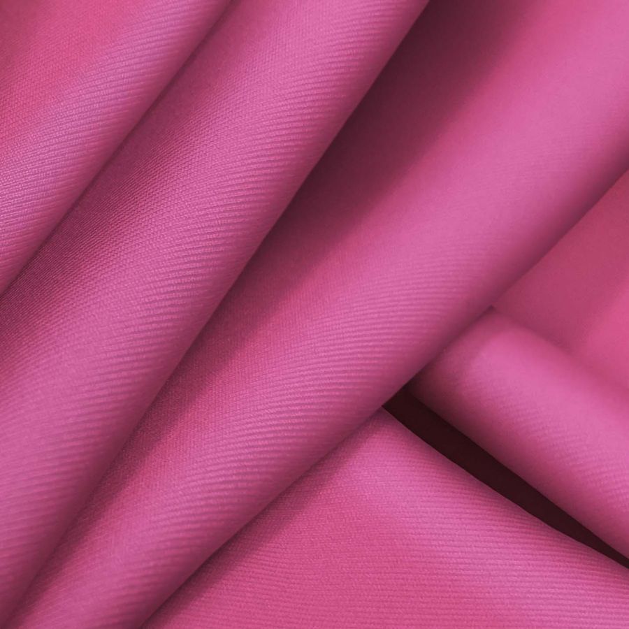 La tela base, Lycra Reciclada - Recycled de 190 gr/m2, es una Lycra hecha de un 85% de poliéster reciclado y un 15% de elastano. Tiene un gramaje de 190 gr/m2 y un ancho de 150 cm. El color liso impreso es Rosa Fandango, que se crea mediante la combinación de tintas Cyan, Magenta y Yellow, con un valor de 8, 80 y 19, respectivamente, en el modelo de color CMYK. Aunque el color no contiene tinta negra, sus tonos son vibrantes y atractivos.