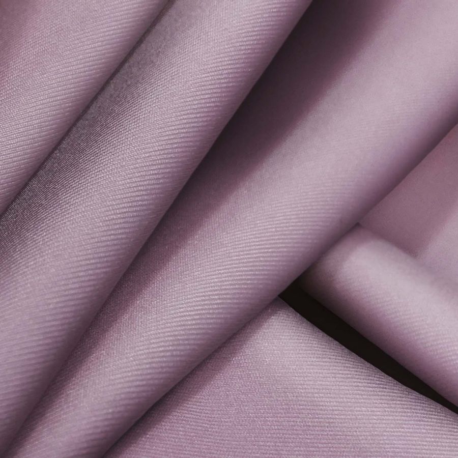 La tela base es Lycra Reciclada - Recycled de 190 gr/m2, de aspecto elástico y suave al tacto, compuesta por 85% de poliéster y 15% de elastano. Tiene un gramaje de 190 gr/m2 y un ancho de 150 cm. El color liso impreso es un rosa Mountbatten, con un CMYK de 42 52 29 11. Este color se caracteriza por ser un tono oscuro y sofisticado, con un toque de morado y gris, lo que le aporta una gran profundidad y elegancia. El rosa Mountbatten combina especialmente bien con colores grisáceos y tierras, como el arena y el beige.